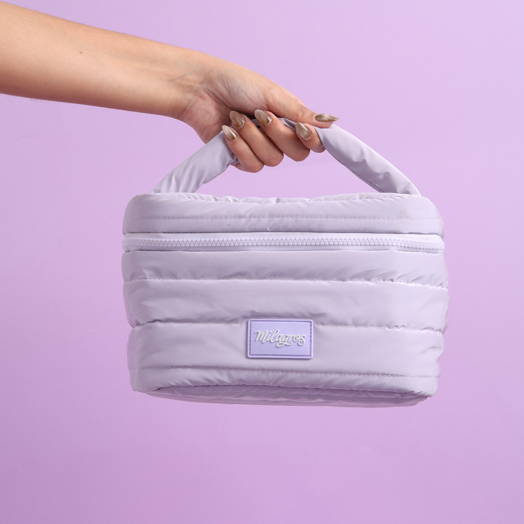 Lleva tus productos favoritos en nuestra nueva cosmetiquera morada, el equilibrio perfecto entre elegancia, comodidad y estilo.
