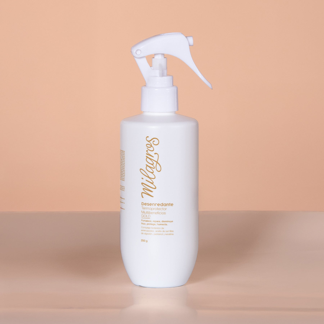 AGITAR ANTES DE USAR Desenredante: AplÃcalo en el cabello húmedo después del baño, deja actuar por 5 minutos y peina con normalidad, inicia con las puntas y termina en la raÃz. Termoprotector: AplÃcalo 10 minutos antes del cepillado o alisado para cuidar la fibra y la hebra capilar. ADVERTENCIAS Y PRECAUCIONES No ingerir, mantener alejado del alcance de los niños y mascotas. Evite el contacto directo con los ojos; en caso de contacto, enjuagar con abundante agua. En caso de que presente algún tipo de alergia al producto, suspenda su uso inmediatamente y consulte a su médico. USO COSMÉTICO Manténgase en un lugar fresco y seco protegido de la luz, a temperatura ambiente. Contiene productos naturales, los cuales pueden presentar variación en el color sin afectar sus propiedades.