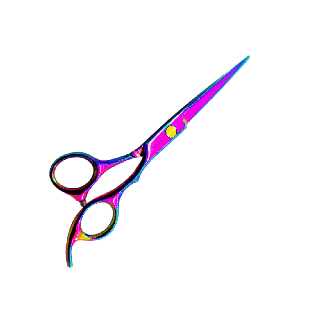 Tijera Titanium para estilistas profesionales: diseño ergonómico, filo duradero y acabado en colores vibrantes para cortes precisos y estilos modernos.