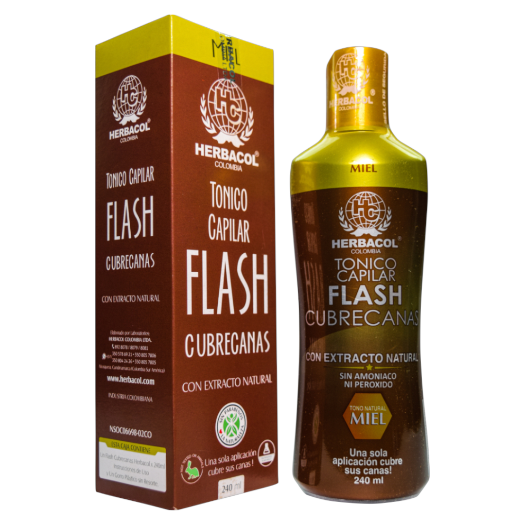 , ya que este podría desplazar el producto y dejar algunas canas descubiertas. Después de una hora, retira el gorro y aplica abundante producto en las puntas para matizar y realzar el color envejecido. Como recomendación, déjalo actuar de 10 a 20 minutos, sin gorro plástico. La clave para un resultado perfecto es aplicar generosamente el FLASH CUBRECANAS.