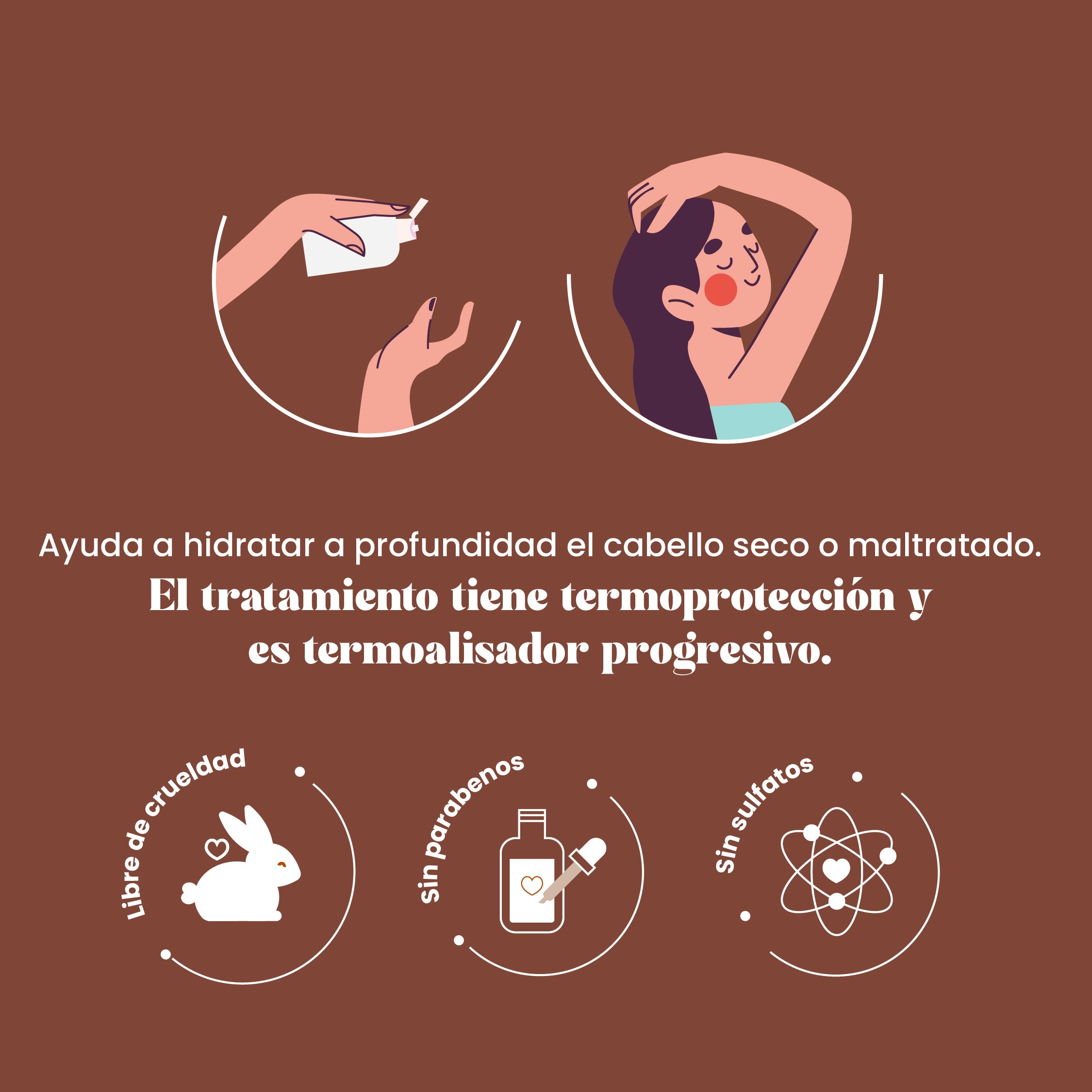 Nuestro tratamiento pulpa de coco con extractos de aceite de coco y keratina ayudan a restaurar el cabello estropeado, reseco o maltratado. Tiene termoprotección y es termoalisador.