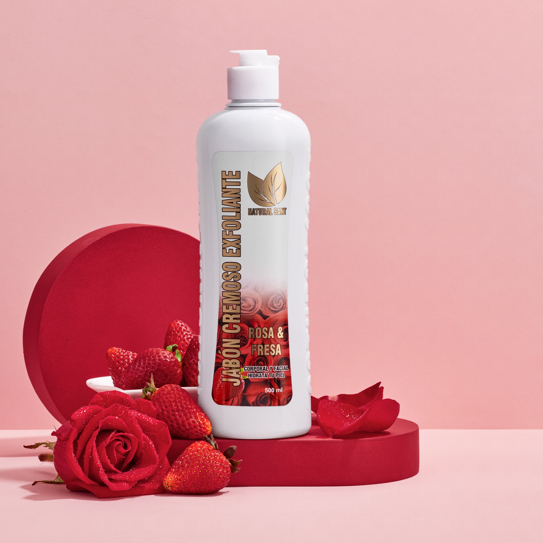 Jabón Cremoso Exfoliante Rosa Y Fresa X500 Ml Natural